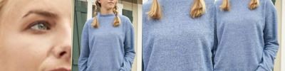 - Contrasting 1x1 baby rib binding on collar and sleeves