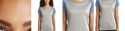 This moisture-wicking, snag-resistant tee combines two heather colors for a unique colorblock design. 3.8-ounce, 100% polyester jersey Gently contoured silhouette Removable tag for comfort and relabeling Neck taping Contrast raglan sleeves Curved drop tail hem **