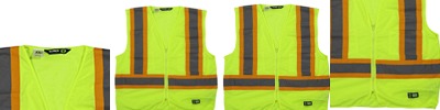 4 oz., polyester mesh; 2" reflective tape; ANSI/ISEA 107-2015 Type R Class 2 Certified; Nylon front zipper; Chest pocket; Snap adjustments on side for extra width; Shorter length design for ease of movement;