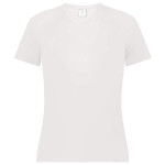 100% polyester wicking knit with color secure(r) technology that helps prevent dye migration * Wicks Moisture * Ladies' fit * Updated fit has longer length and bigger chest for added comfort * V-neck collar * Raglan sleeves