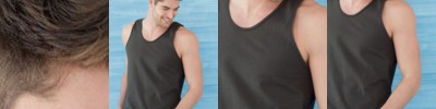 - Double-needle stitched rib binding on neck, and armholes.
