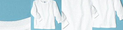 • Double-needle stitched neckline, bottom hem and sleeves