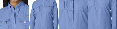3 oz., 100% Tactel®; nylon taffeta Back Country Cloth; Quick-dry; Omni-Shade™; UPF 30 sun protection; Button-down collar; Vented; Utility loop; Columbia PFG logo patch on rod holder on left chest; PFG tags on left and right chest pockets.
